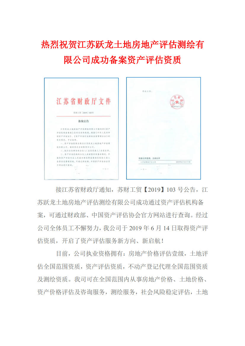 热烈祝贺我司荣获资产评估资质