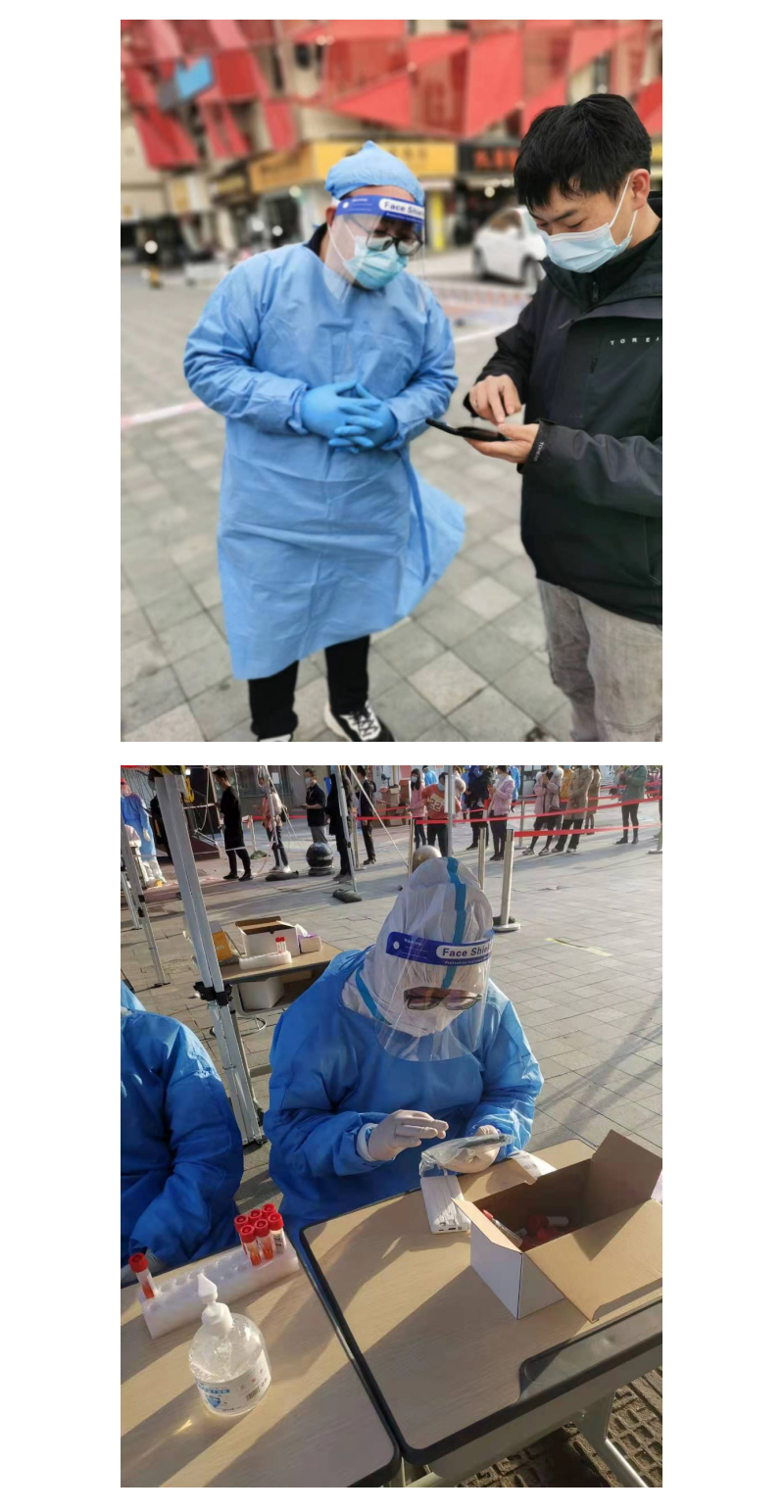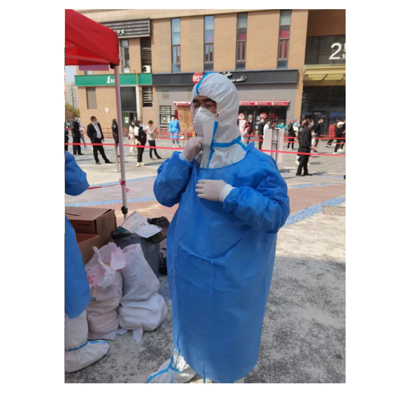 我(缪梅铖)是江苏跃龙土地房地产评估测绘有限公司的一员,在疫情面前,作为有当担的跃龙人,我们冲在疫情防控第一线,在南通开发区春天社区做信息采集员期间,每天穿着防护服和医生一起为做核酸的人登记信息,每天从早上五点开始一直到下午五点都一直为每位做核酸的市民提供便利,中午烈阳高照的时候也让我有机会体验到只有在视频媒体上才能看到的防护服倒出水的感觉。还好我们只进行了断断续续的三个礼拜,让我感受到疫情的无情以及相关街道的大爱,我由衷的佩服那些常年奋战在一线的大白志愿者和街道的相关人员。